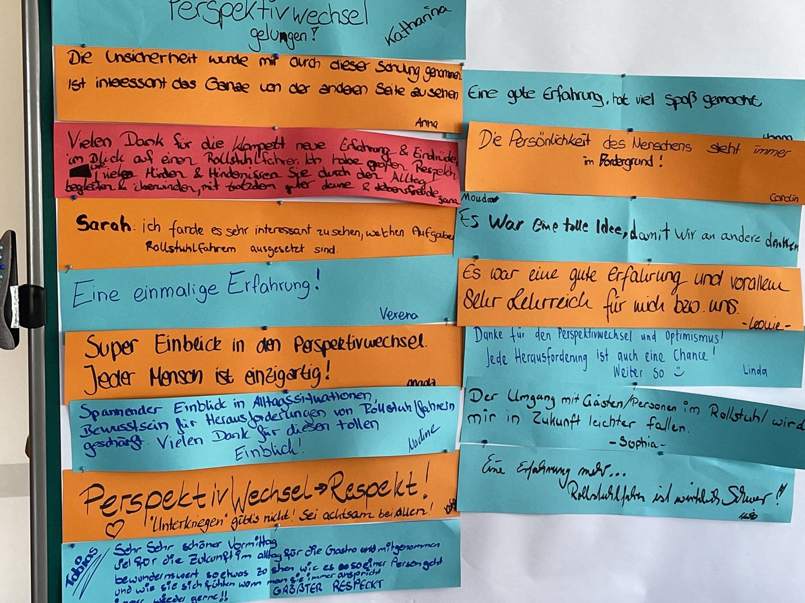 ich darf mich für die sehr gute Vorbereitung und Umsetzung des Workshops „Perspektivwechsel“ herzlich bedanken. Unsere ca. 40 Teilnehmer haben eine beeindruckende Erfahrung mi Ihnen machen dürfen und ich bin davon überzeugt, dass es hier in Zukunft vermehrt zu einem Perspektivwechsel kommt, weil man an den eigenen Armen und auch der unterschiedlichen Augenhöhe erfahren durfte, was es bedeutet, im Sitzen alles erledigen zu müssen.